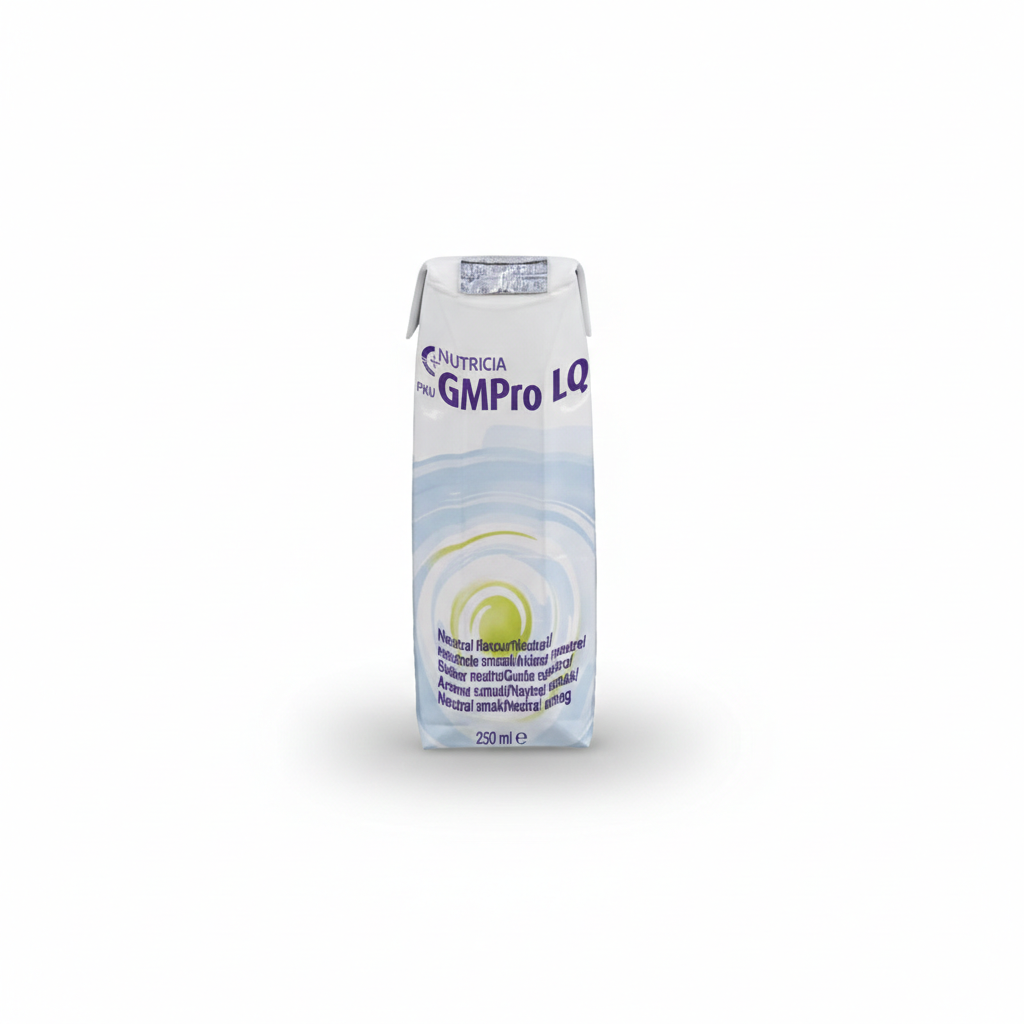 PKU GMPro LQ is a neutral flavour, nutritionally incomplete, low-phenylalanine ready-to-use liquid containing casein glycomacropeptide (GMP), with essential and non-essential amino acids, carbohydrates, fat (including docosahexaenoic acid (DHA) and eicosapentaenoic acid (EPA)), vitamins, minerals, and trace elements.