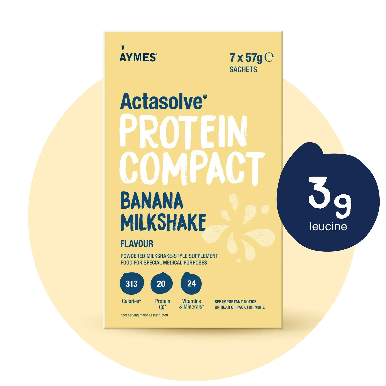 Actasolve Protein Compact is a Food for Special Medical Purposes. It is a high protein powder supplement providing 25% energy from protein when reconstituted with 100ml whole milk. Each 57g sachet provides approximately 432 kcal with 30g of high-quality milk protein.
