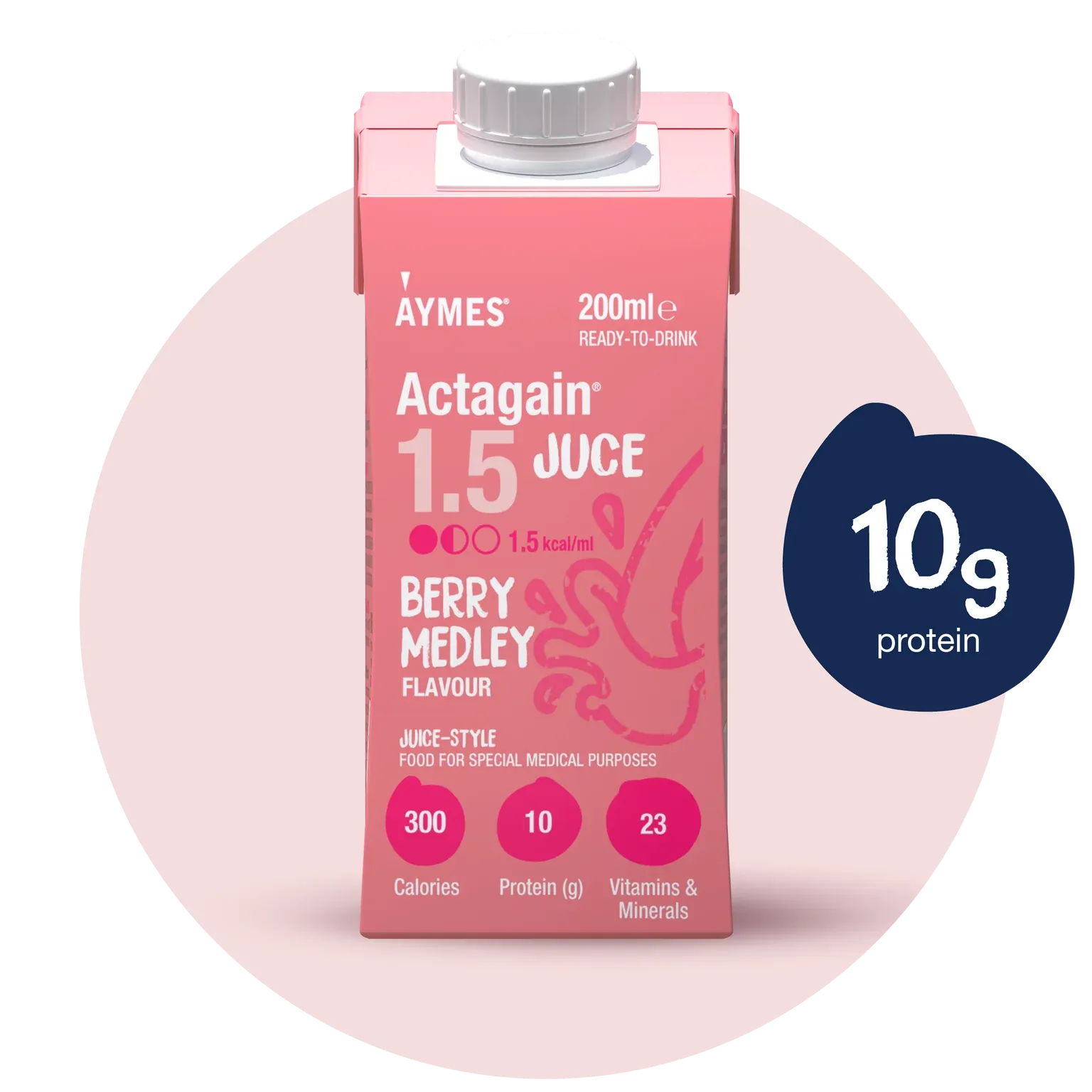 Actagain Juce is a Food for Special Medical Purposes. It is a high energy (1.5 kcal/ml) ready-to-drink juice-style nutritional supplement designed for the dietary management of patients with or at risk of disease-related malnutrition.