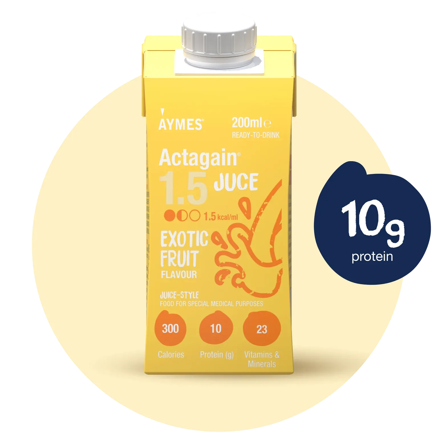 Actagain Juce is a Food for Special Medical Purposes. It is a high energy (1.5 kcal/ml) ready-to-drink juice-style nutritional supplement designed for the dietary management of patients with or at risk of disease-related malnutrition.